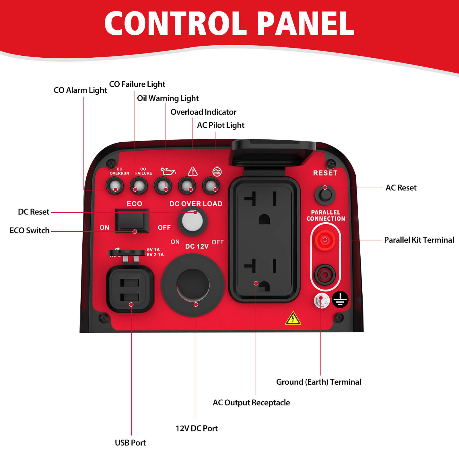 - CO Sensor: Auto shut-off for safety when harmful CO levels are detected.