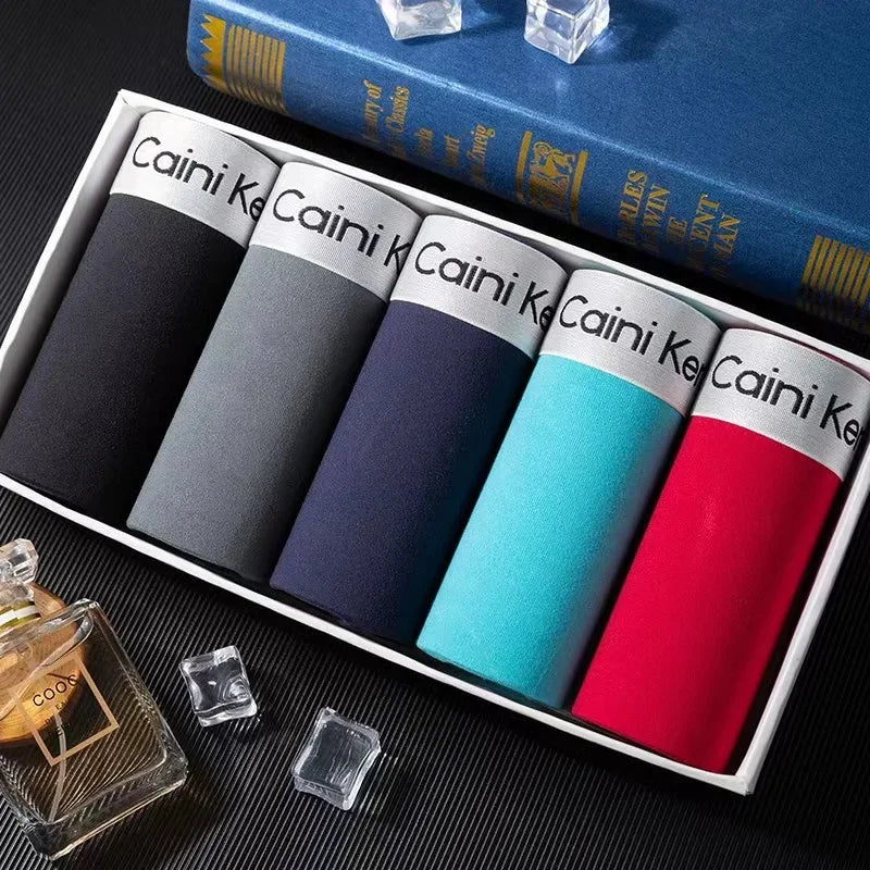 5Pcs/Men's Shorts Brand Underwear Fashion Trend Sexy Boxer Breathable Soft Boxers Men Classic Black Solid Color Underwear Men