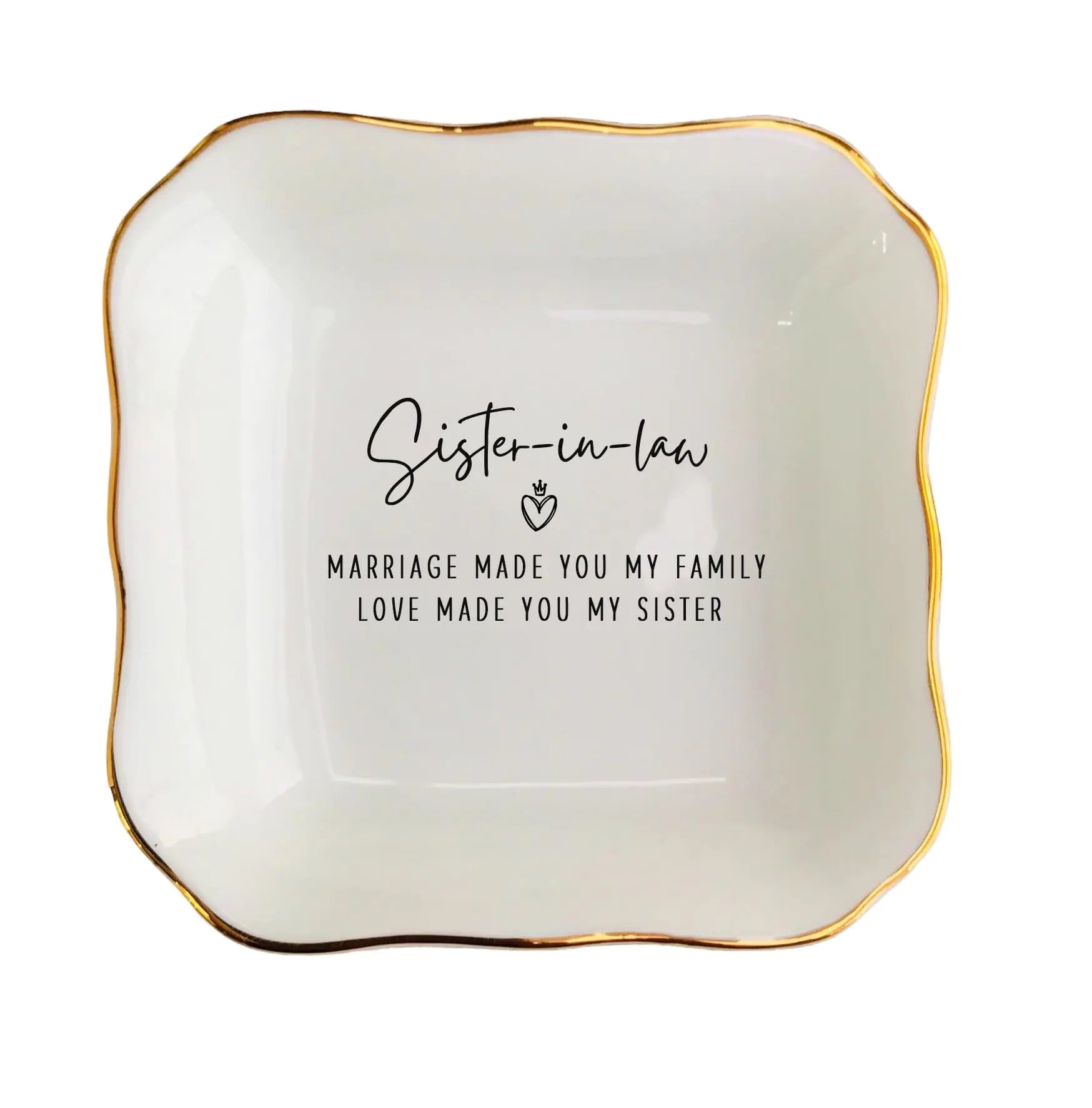 Ceramic Ring Dish Marriage made you my family Jewelry DishGift for Sister-in-Law Gifts Sister of the Groom Gifts Birthday Gifts Christmas Gifts Sister In Law Gifts Wedding Gifts