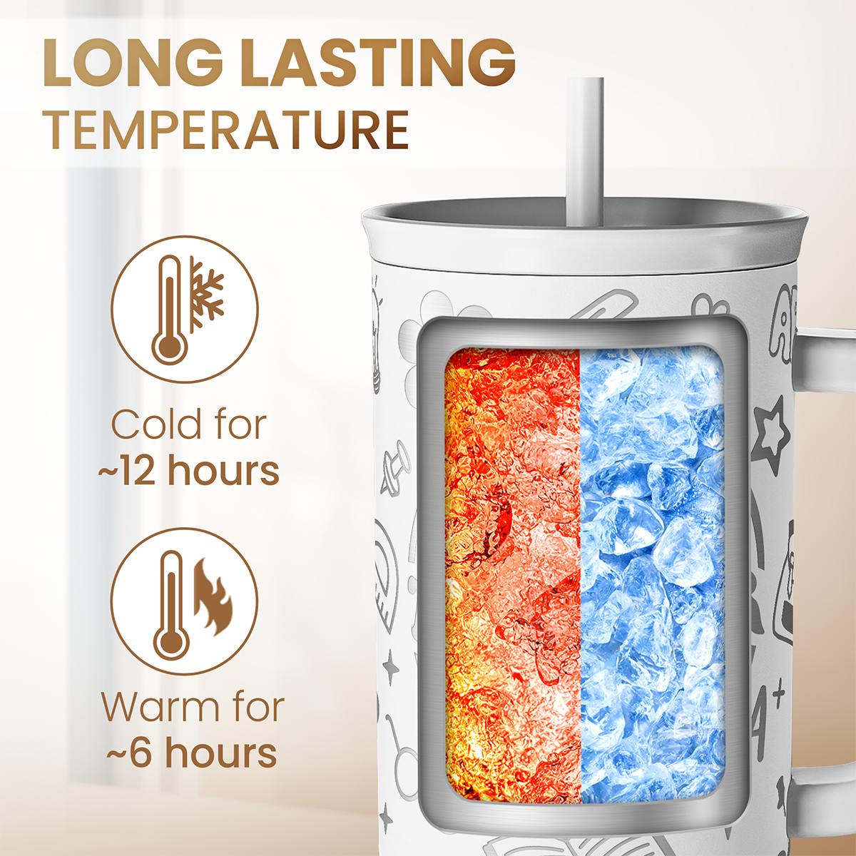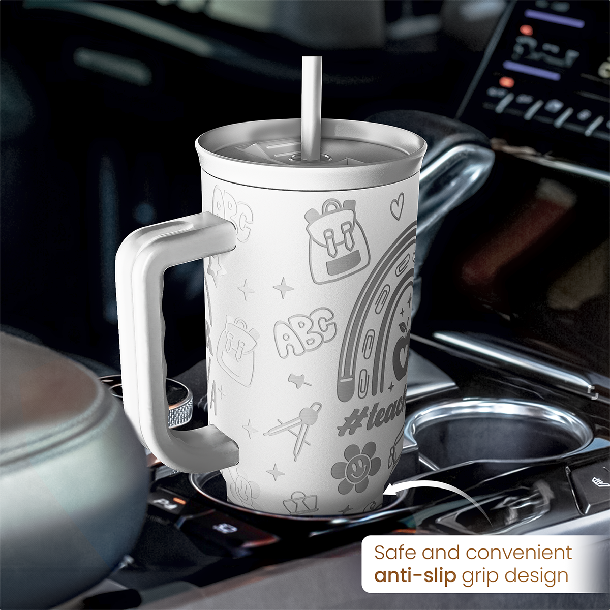 Are you looking a tumbler that is both practical and stylish to show off to your friends and loved ones? Well, look no further because we have what you need here. Introducing the 40oz tumbler with handle that is designed to elevate your drinking experience. The tumbler is crafted with meticulous attention to detail as it features a sleek and modern design. The 40oz capacity ensures you have ample space to quench your thirst throughout the day, whether you're sipping on icy cold water or enjoying a piping hot beverage. With the inclusion of double-wall vacuum insulation, your drinks will stay refreshingly cold or heartwarmingly hot for quite some time. The stainless steel exterior also increase the tumbler's longevity. The comfortable handle makes it easy to carry, whether you're at the gym, office, or on an adventure. Whether you're heading to the office, going on a camping trip, or hitting the gym, this 40oz tumbler is the perfect companion to keep you hydrated and satisfied. With a wide array of designs to choose from, finding a tumbler that perfectly matches your personal taste or that of your loved ones is a breeze. For optimal cleaning, we highly recommend hand washing the tumbler.