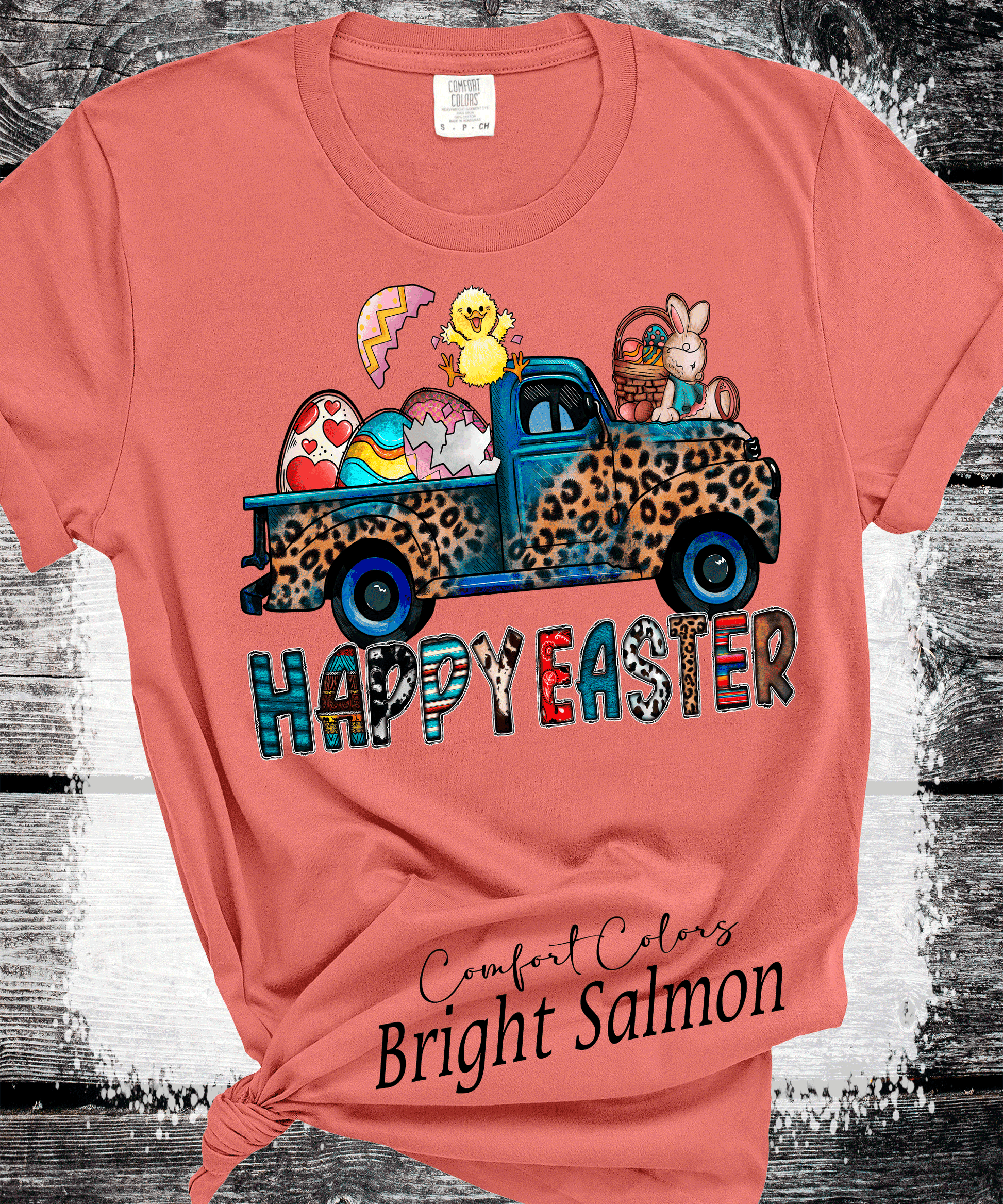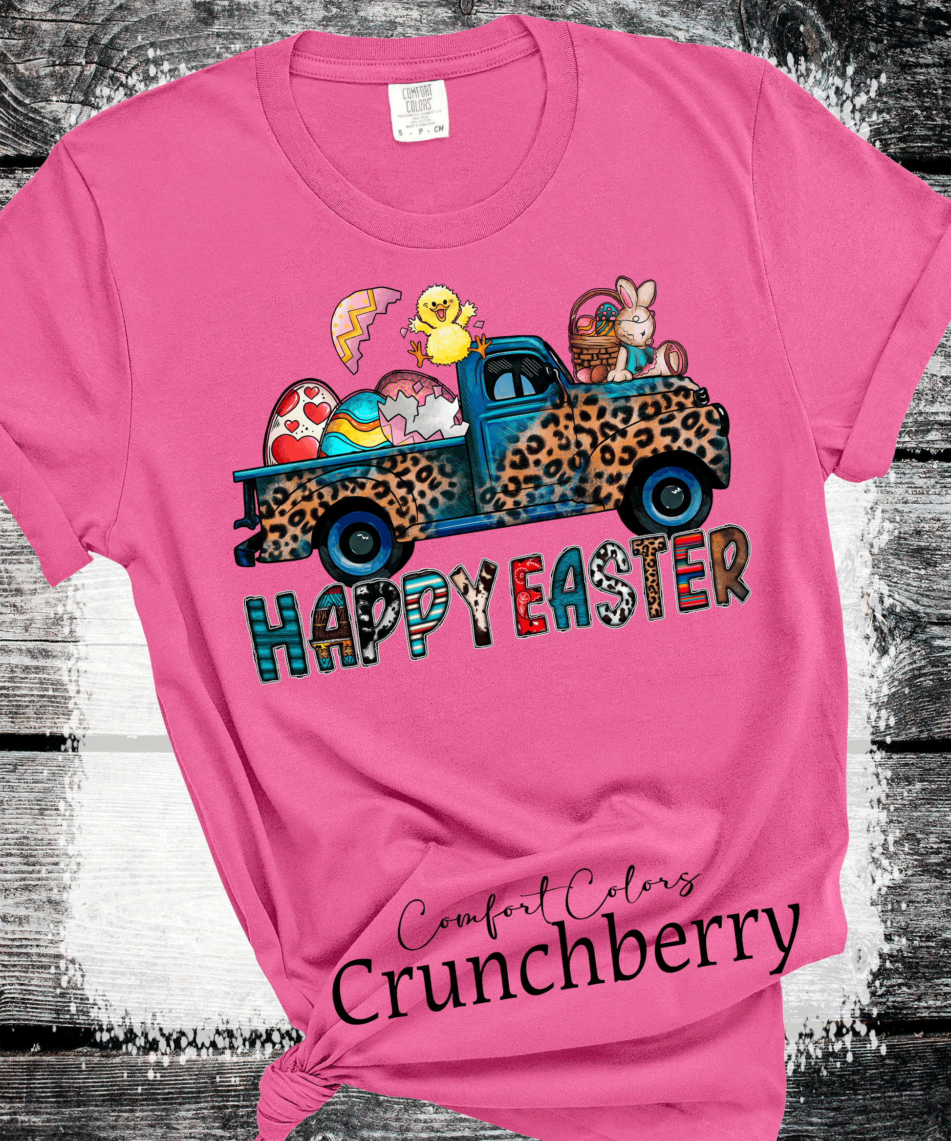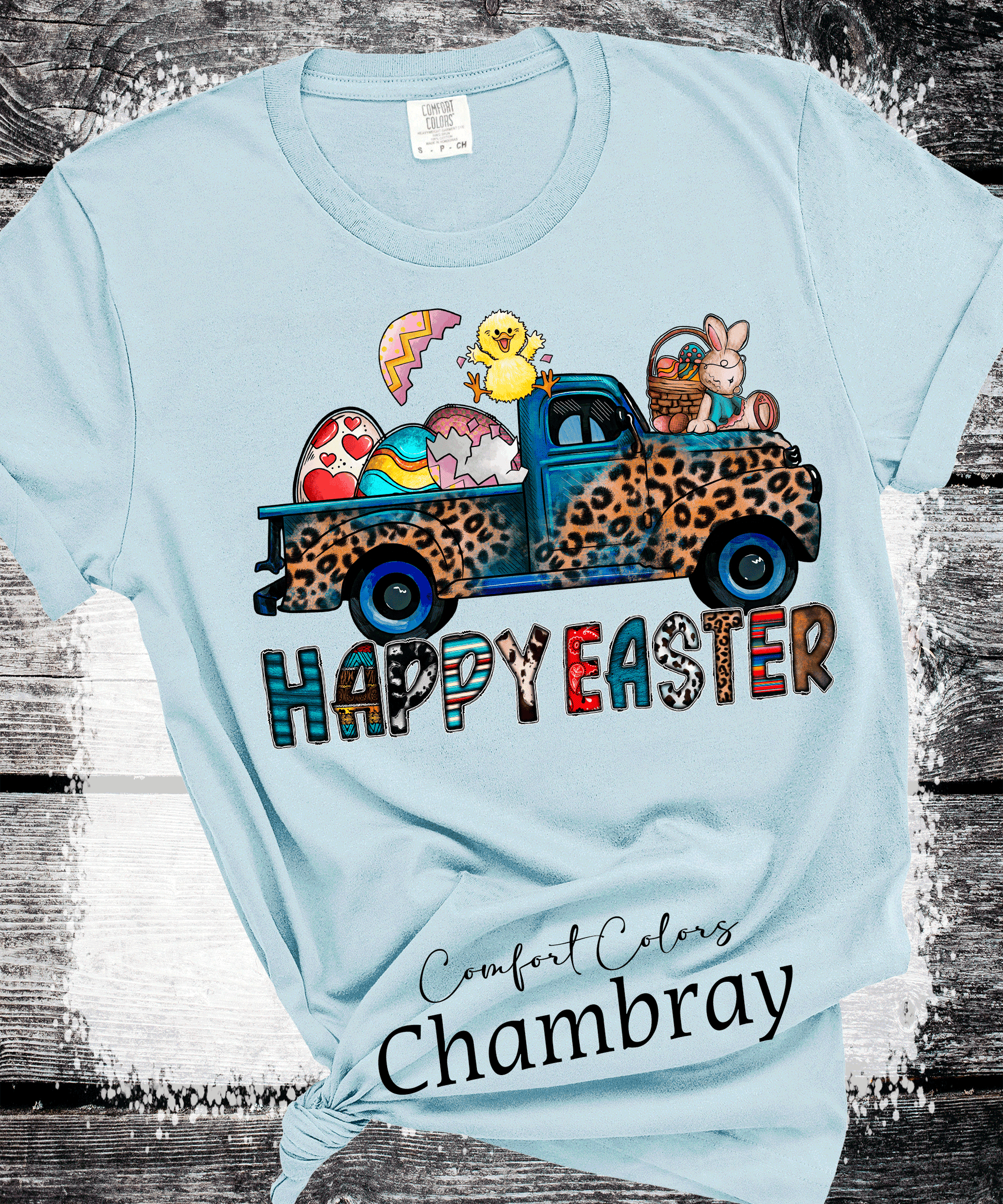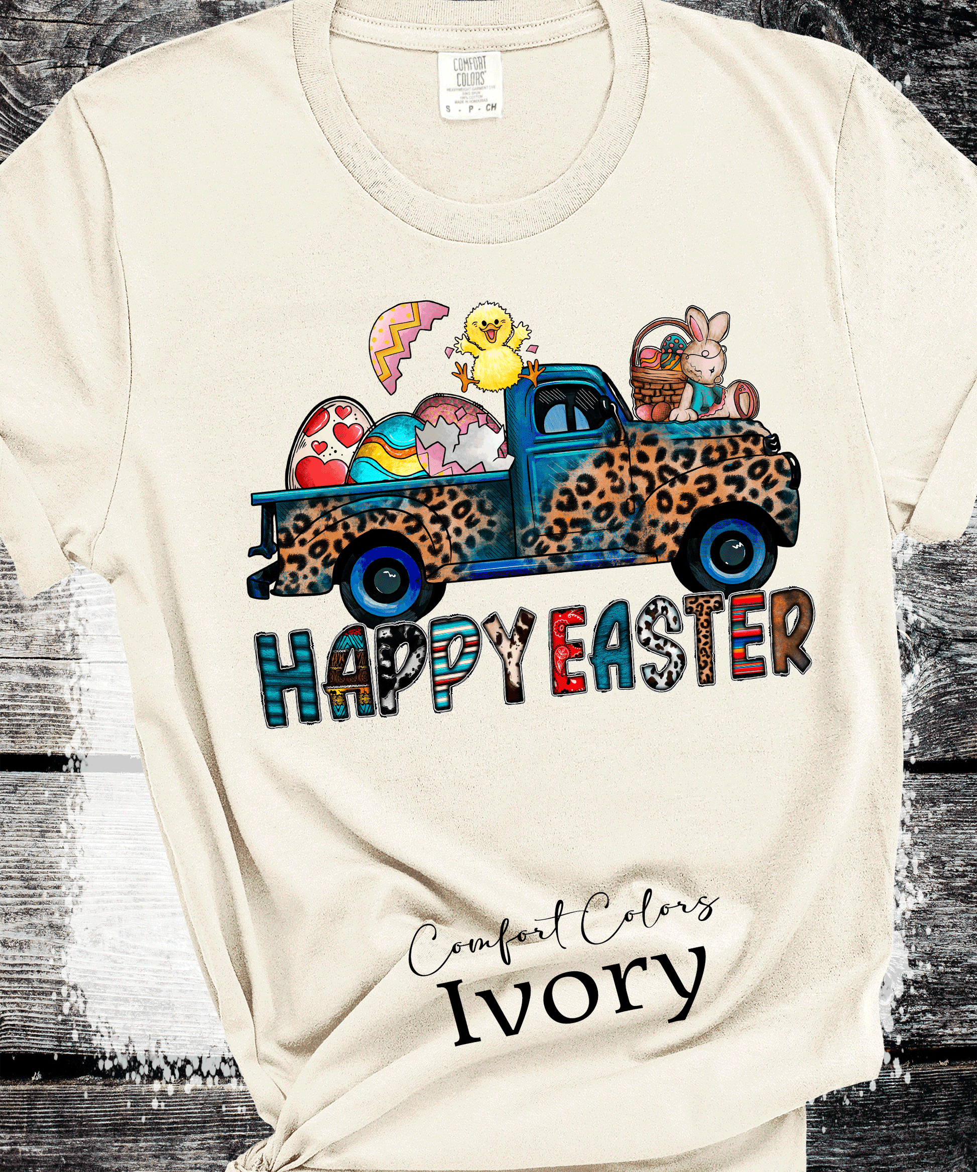 BOHO Happy Easter Leopard Truck Eggs Chicks Rabbits