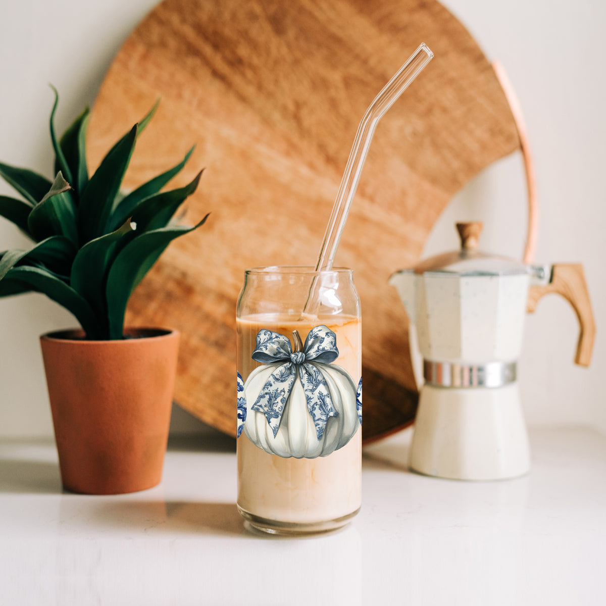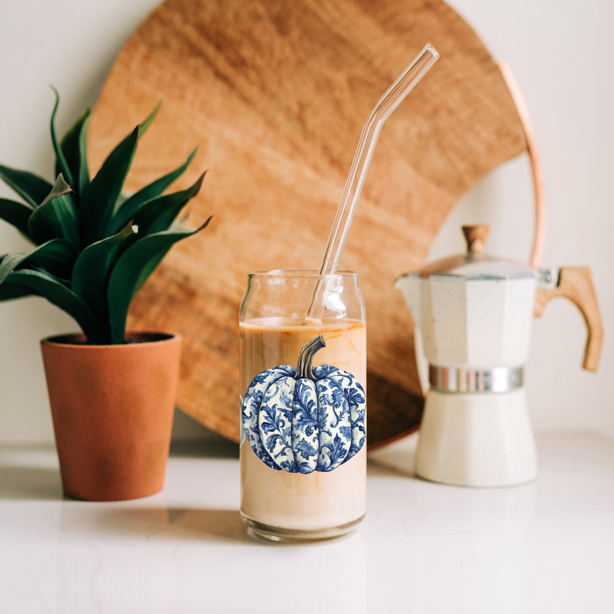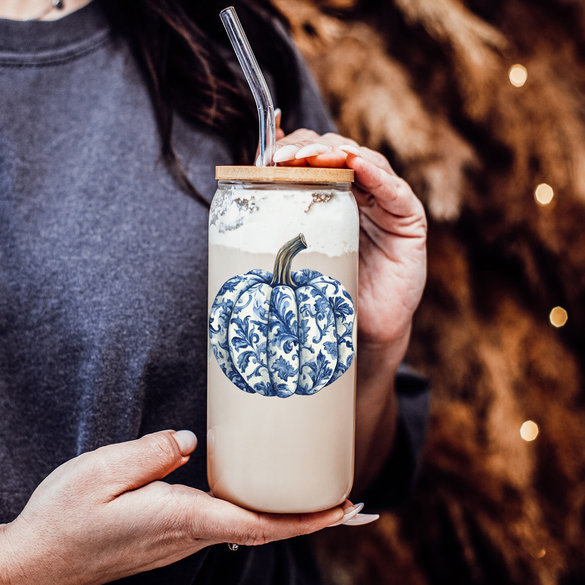 Introducing our most sophisticated fall collection yet - because why have one gorgeous Chinoiserie pumpkin when you can have two styles? These 20oz glass tumblers feature alternating blue chinoiserie and white Chinoiserie ribbon pumpkins that make basic fall decor look positively ordinary!