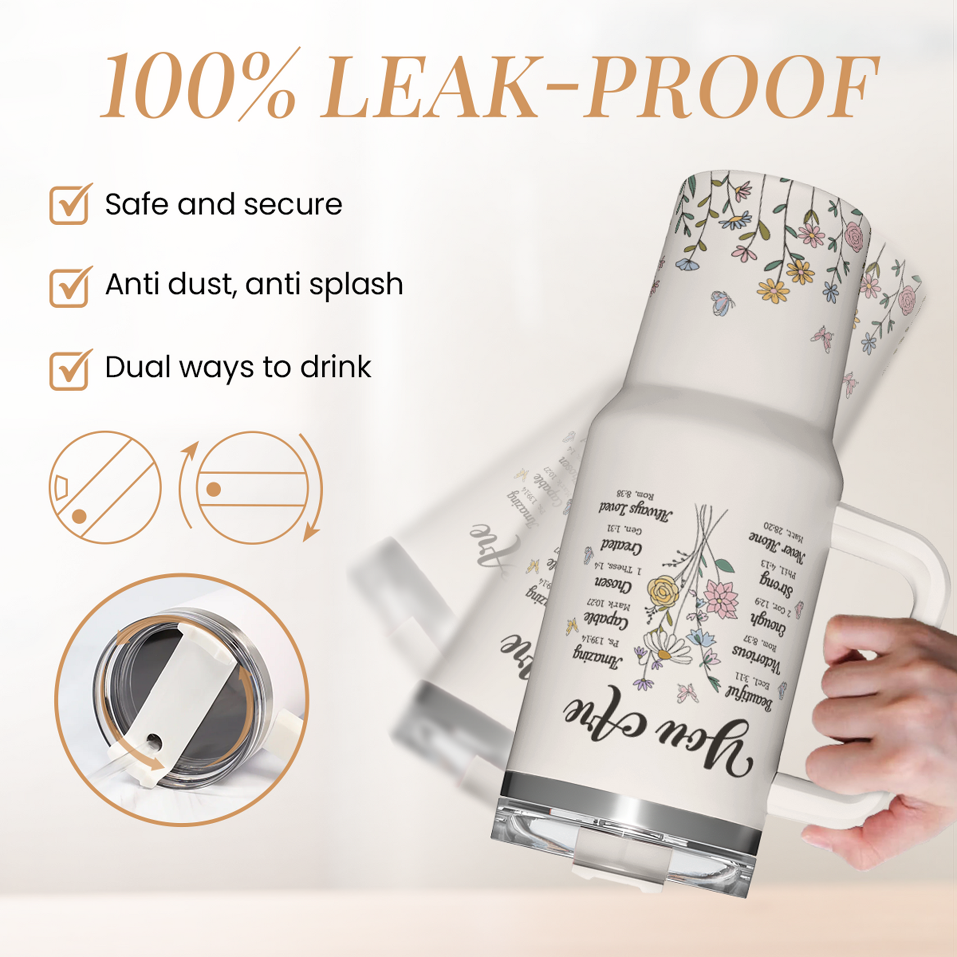 Christian Gifts for Women, Inspiration Gifts Tumbler 40oz Stainless Steel Insulated with Handle and Straw - Mother's Day Birthday Religious Gifts for Mom, Friend, Sister, Grandma
