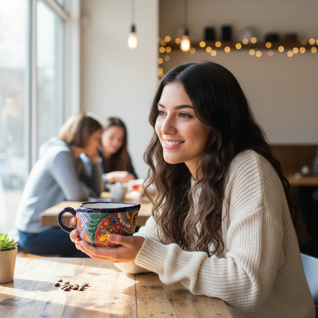 QUALITY: Made from durable ceramic and finished with a glossy, lead-free glaze. Each mug is carefully shaped and painted by skilled artisans, making every piece a little different and full of character.