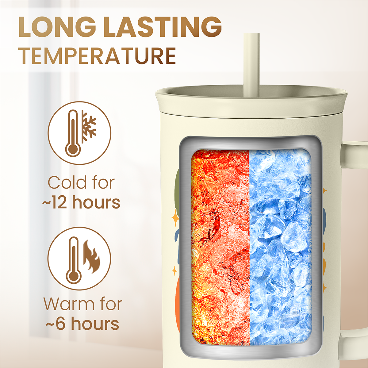 Are you looking a tumbler that is both practical and stylish to show off to your friends and loved ones? Well, look no further because we have what you need here. Introducing the 40oz tumbler with handle that is designed to elevate your drinking experience. The tumbler is crafted with meticulous attention to detail as it features a sleek and modern design. The 40oz capacity ensures you have ample space to quench your thirst throughout the day, whether you're sipping on icy cold water or enjoying a piping hot beverage. With the inclusion of double-wall vacuum insulation, your drinks will stay refreshingly cold or heartwarmingly hot for quite some time. The stainless steel exterior also increase the tumbler's longevity. The comfortable handle makes it easy to carry, whether you're at the gym, office, or on an adventure. Whether you're heading to the office, going on a camping trip, or hitting the gym, this 40oz tumbler is the perfect companion to keep you hydrated and satisfied. With a wide array of designs to choose from, finding a tumbler that perfectly matches your personal taste or that of your loved ones is a breeze. For optimal cleaning, we highly recommend hand washing the tumbler.