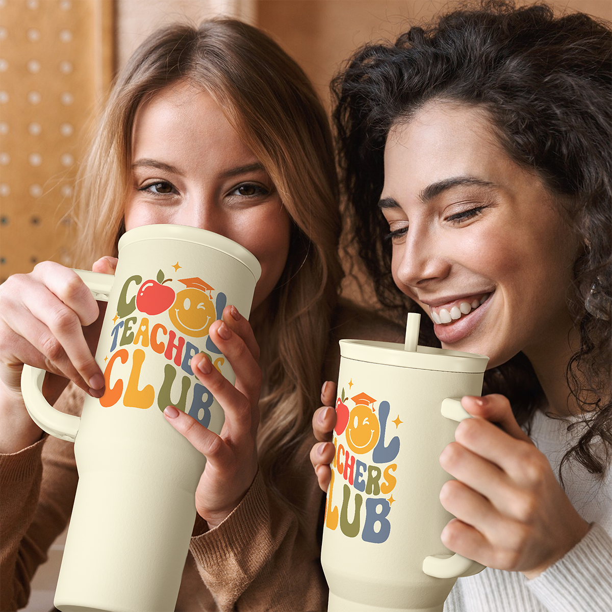 Cool Teacher Club Tumbler 40oz, Stainless Steel Insulated Coffee Travel Cup with Handle, Teacher Appreciation Gifts for Women, Teachers Gift for Valentines Birthday Farewell Christmas Teacher's Day