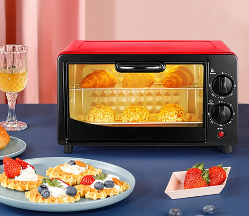 Multifunctional Baking Oven: This 12L electric oven handles baking, toasting, and cooking, ideal for bread, pizza, cookies, and biscuits. Its versatile timer allows precise cooking control, enhancing your kitchen efficiency for quick snacks or meal prep.