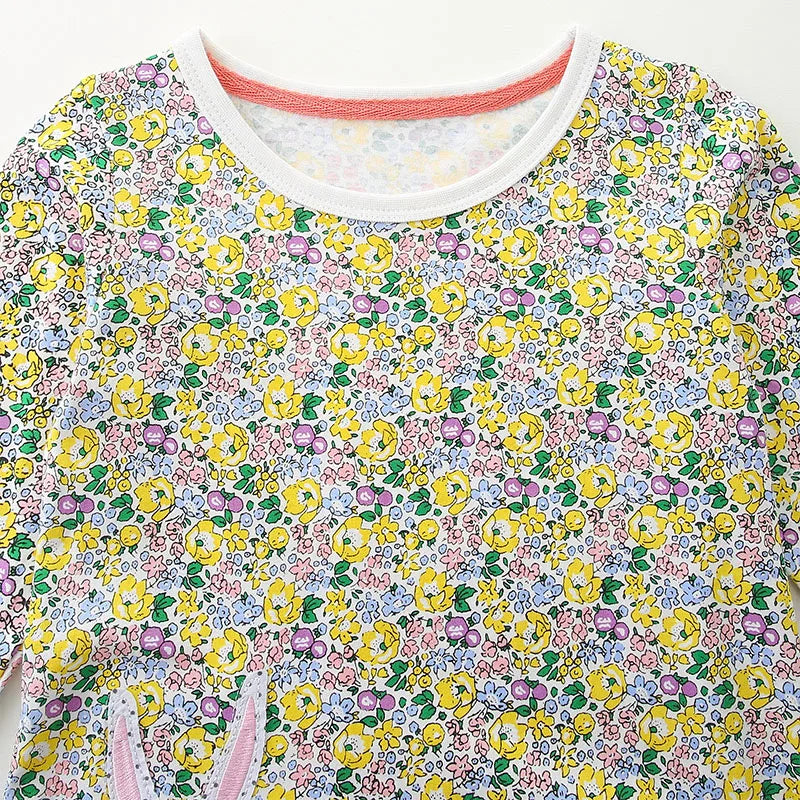 Girls Easter Floral Long-Sleeve Cotton Dress