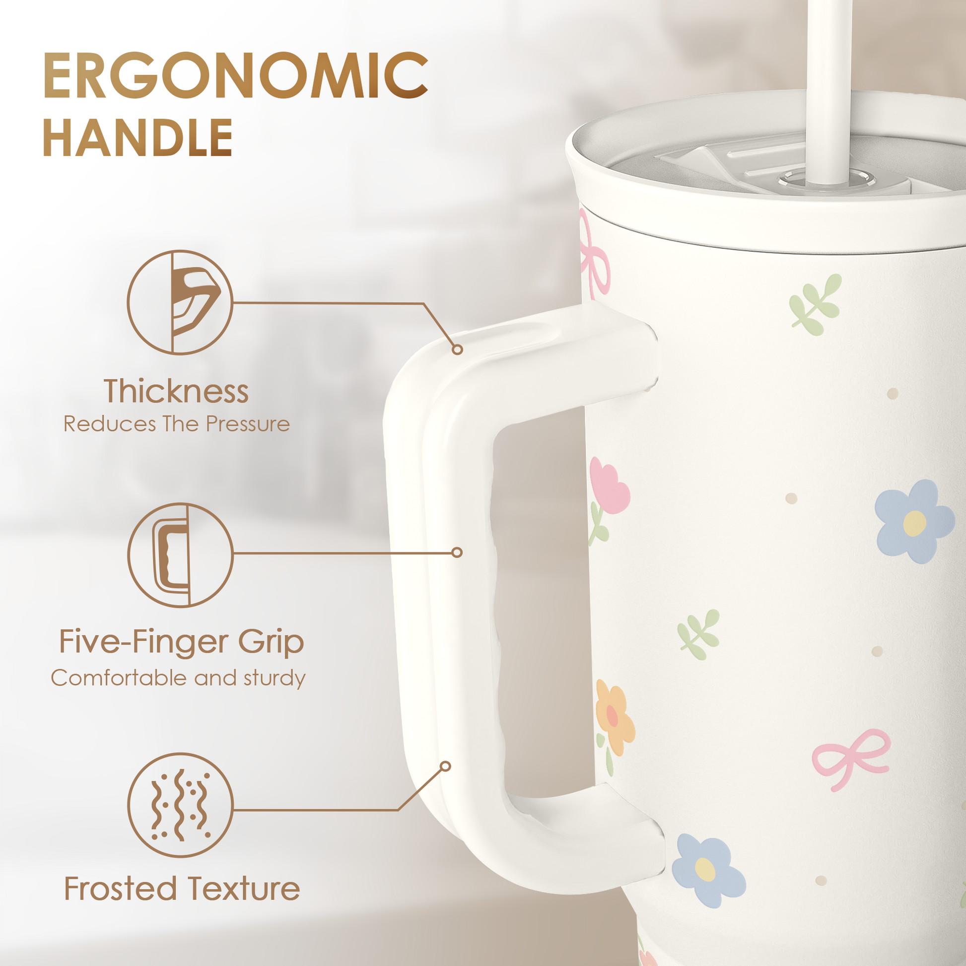 - Hydration in style: our 40 ounce tumbler with handle is big enough to conquer your thirst while adding a stylish touch to your daily routine; plus the practicality of the tumbler makes excellent gift option for cherished ones