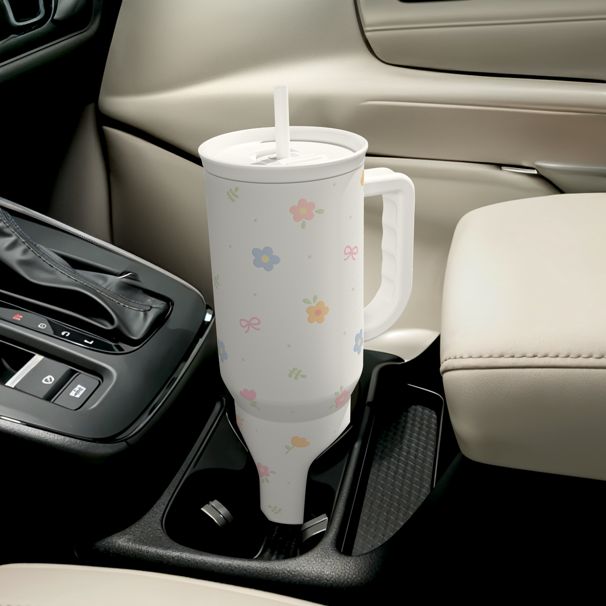 Floral 40oz Slider Tumbler with Handle and Straw - Insulated Stainless Steel Travel Coffee Mug for Women Girls, Gift for Birthday Christmas