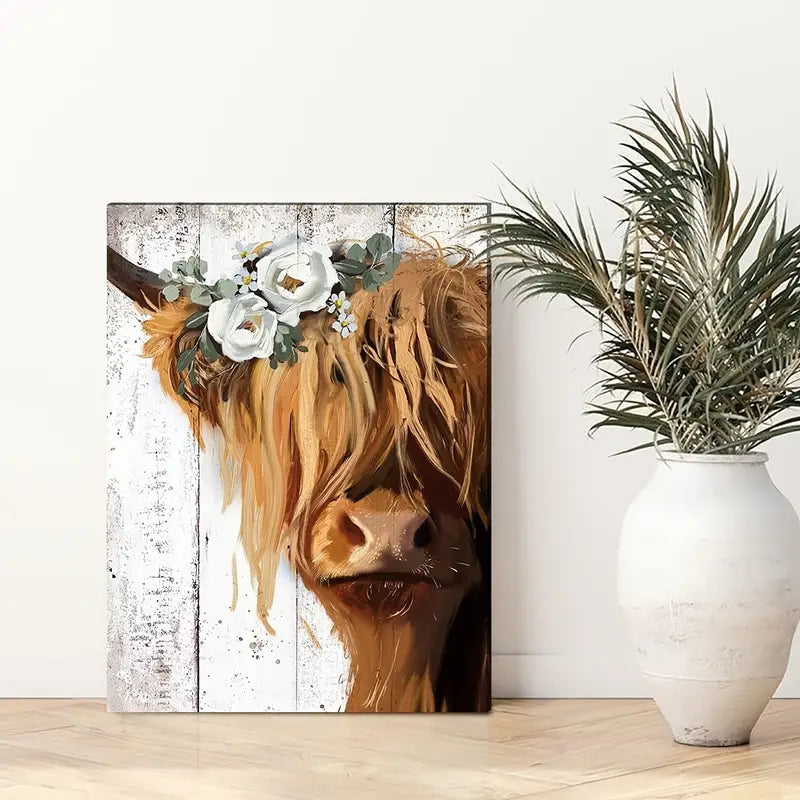 Perfect for those who love a rustic vibe, this frameless canvas art piece will seamlessly blend with your existing decor. Whether you're redecorating your bathroom or looking for the ideal gift for a friend, this Fun Cow Canvas is sure to delight and inspire.