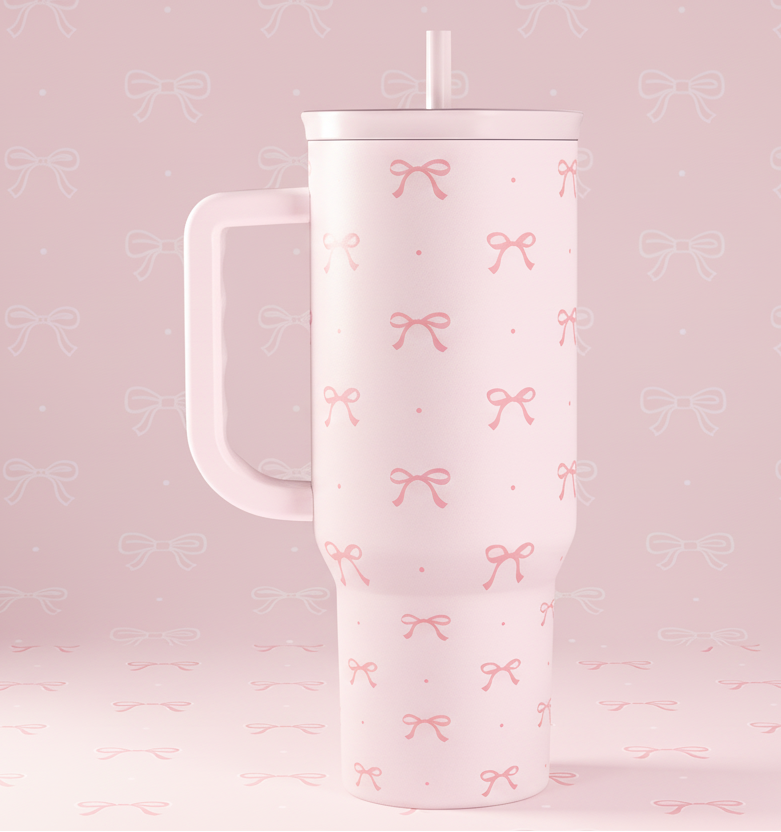 Gift for Women Girls - Coquette Bow Stainless Steel Tumbler with Handle, Travel Coffee Mug - Gifts for Birthday Christmas, 40oz