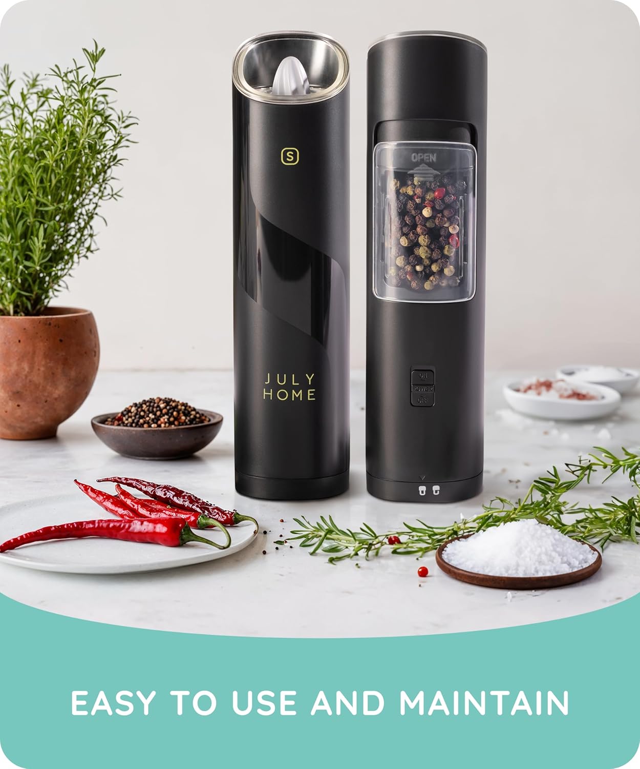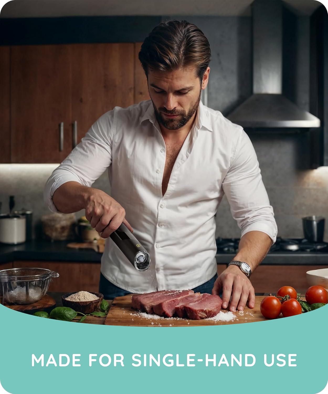 - πππππ-ππ πππ πππππ: Never guess how much salt or pepper you're using. Our Automatic Salt and Pepper Grinder Set features a built-in LED light that illuminates your plate, ensuring precise seasoning even in low-light conditions.