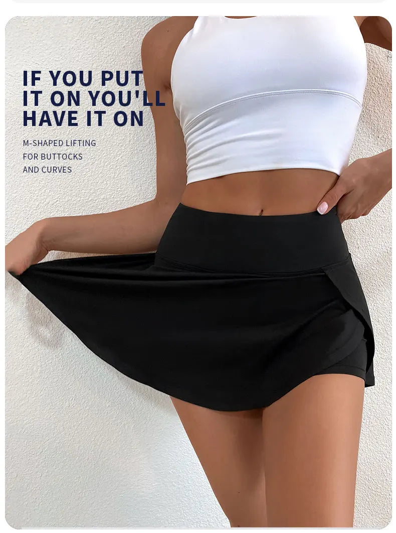 High Waist Sports Culottes Women Yoga Fitness Tennis Lining Anti Light Running Quick Drying Skirt Suitable for Running Yoga