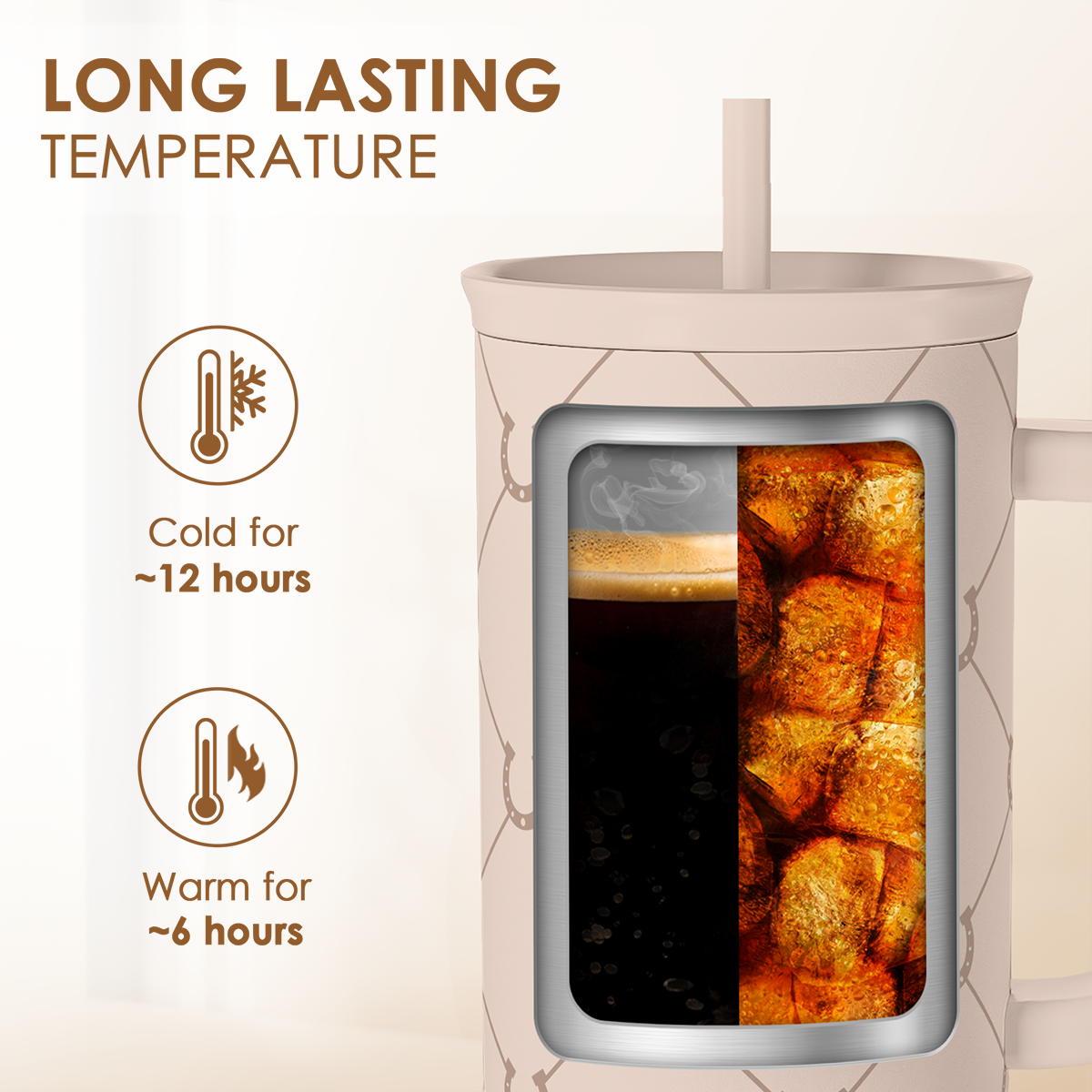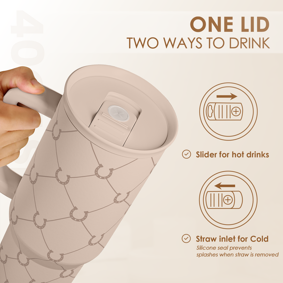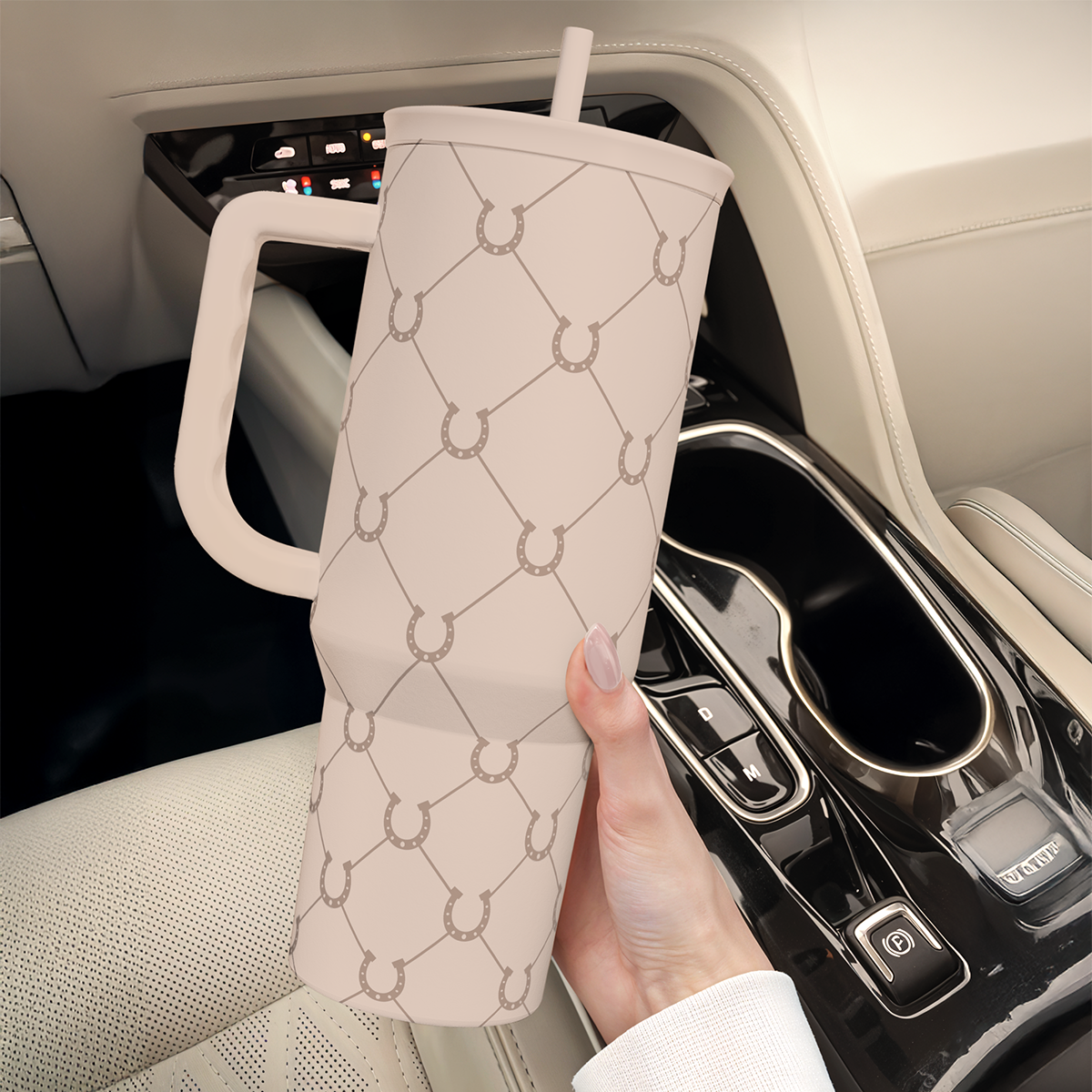 Are you looking a tumbler that is both practical and stylish to show off to your friends and loved ones? Well, look no further because we have what you need here. Introducing the 40oz tumbler with handle that is designed to elevate your drinking experience. The tumbler is crafted with meticulous attention to detail as it features a sleek and modern design. The 40oz capacity ensures you have ample space to quench your thirst throughout the day, whether you're sipping on icy cold water or enjoying a piping hot beverage. With the inclusion of double-wall vacuum insulation, your drinks will stay refreshingly cold or heartwarmingly hot for quite some time. The stainless steel exterior also increase the tumbler's longevity. The comfortable handle makes it easy to carry, whether you're at the gym, office, or on an adventure. Whether you're heading to the office, going on a camping trip, or hitting the gym, this 40oz tumbler is the perfect companion to keep you hydrated and satisfied. With a wide array of designs to choose from, finding a tumbler that perfectly matches your personal taste or that of your loved ones is a breeze. For optimal cleaning, we highly recommend hand washing the tumbler.