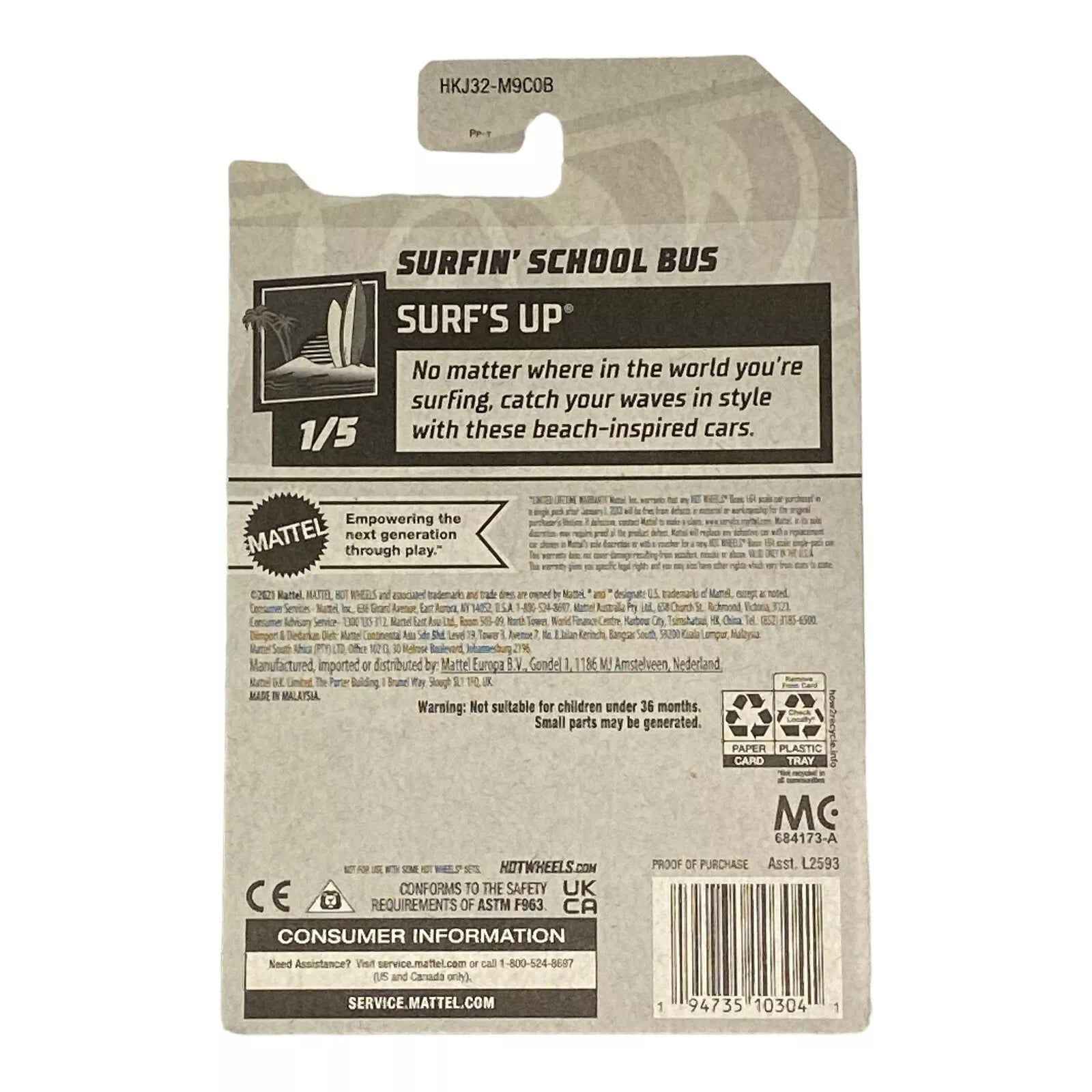 As part of the Surf's Up Series, the Hot Wheels Surfin' School Bus is not to be missed. It's an excellent choice for birthday gifts, holiday presents, or a special treat for any young car enthusiast. Parents can feel confident in the product's quality and safety, allowing for countless hours of fun without worry