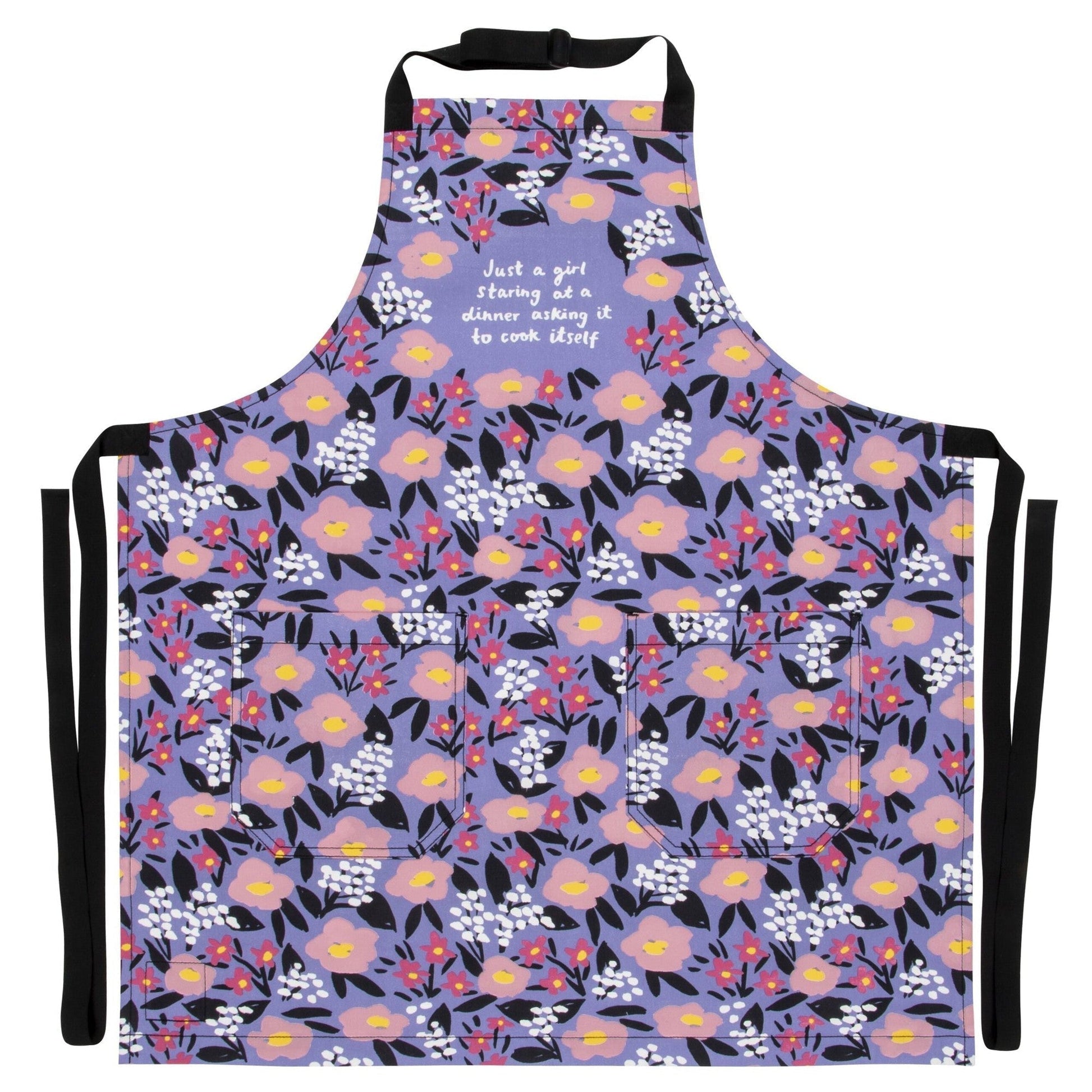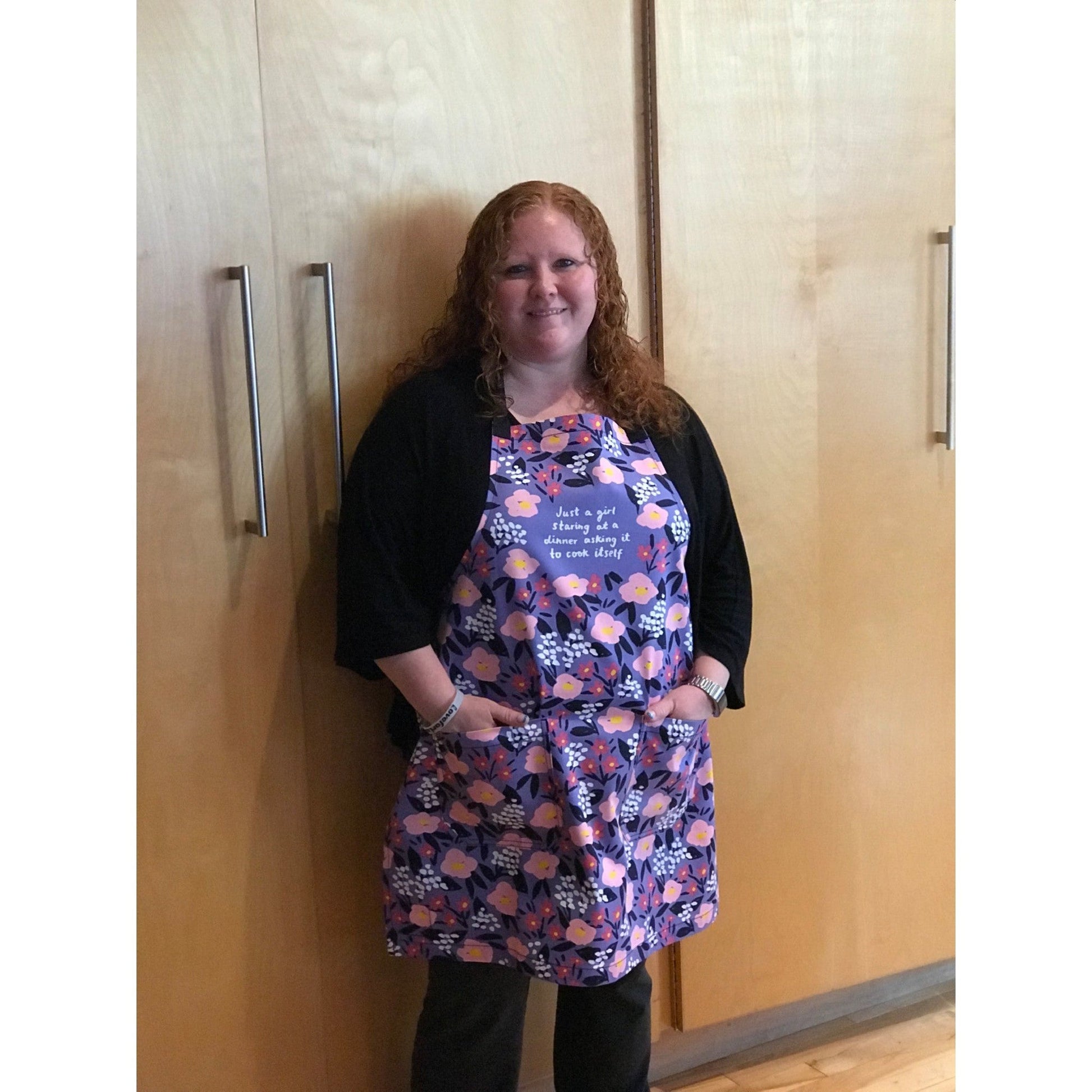 Just A Girl Staring At A Dinner Asking It To Cook Itself Funny Cooking and BBQ Apron 2 Pockets Adjustable Strap 100% Cotton | Gift for Her