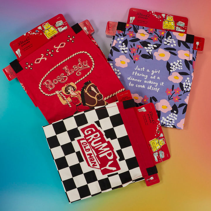 - GIVE BACK: One percent of the sale of Blue Q aprons is donated to hunger relief programs throughout the world.