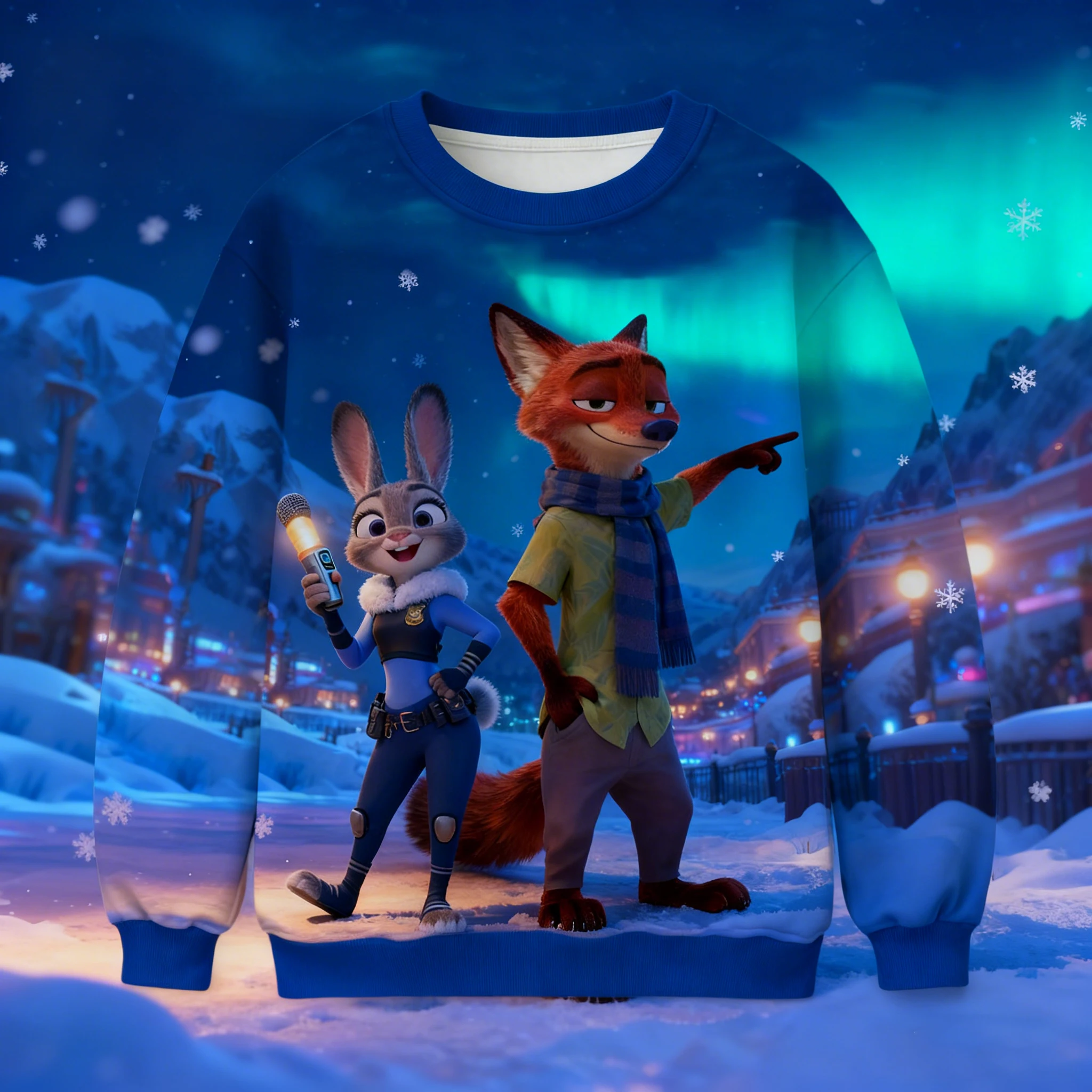 Kids Cartoon Sweatshirt Long Sleeve Round Neck Top Zootopia 2 Judy Hopps Nick Wilde Comfortable For Daily Wear Layering