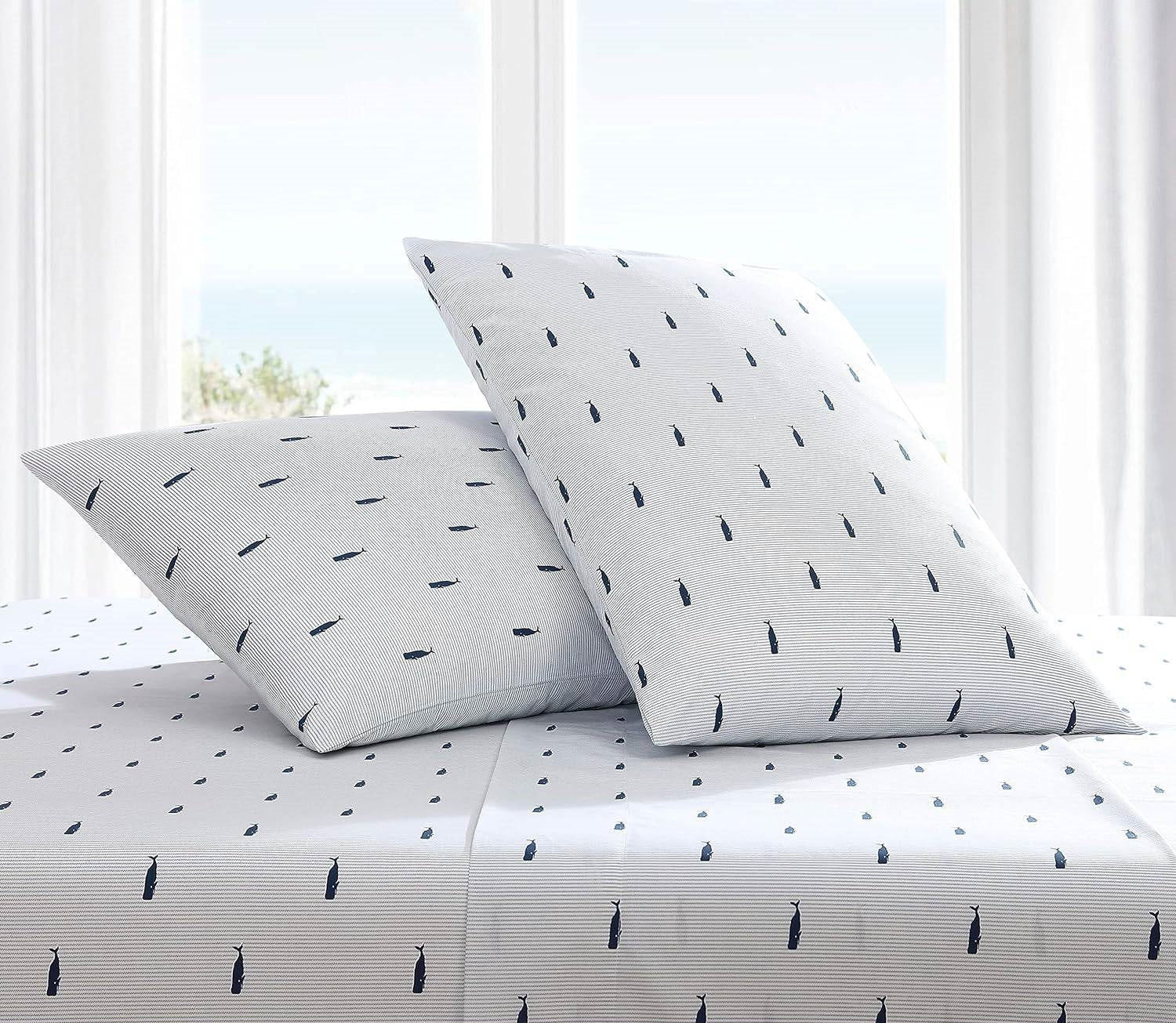 - King size Coastal Beach 100-Percent Cotton Navy Blue White Stripe Sheet Set