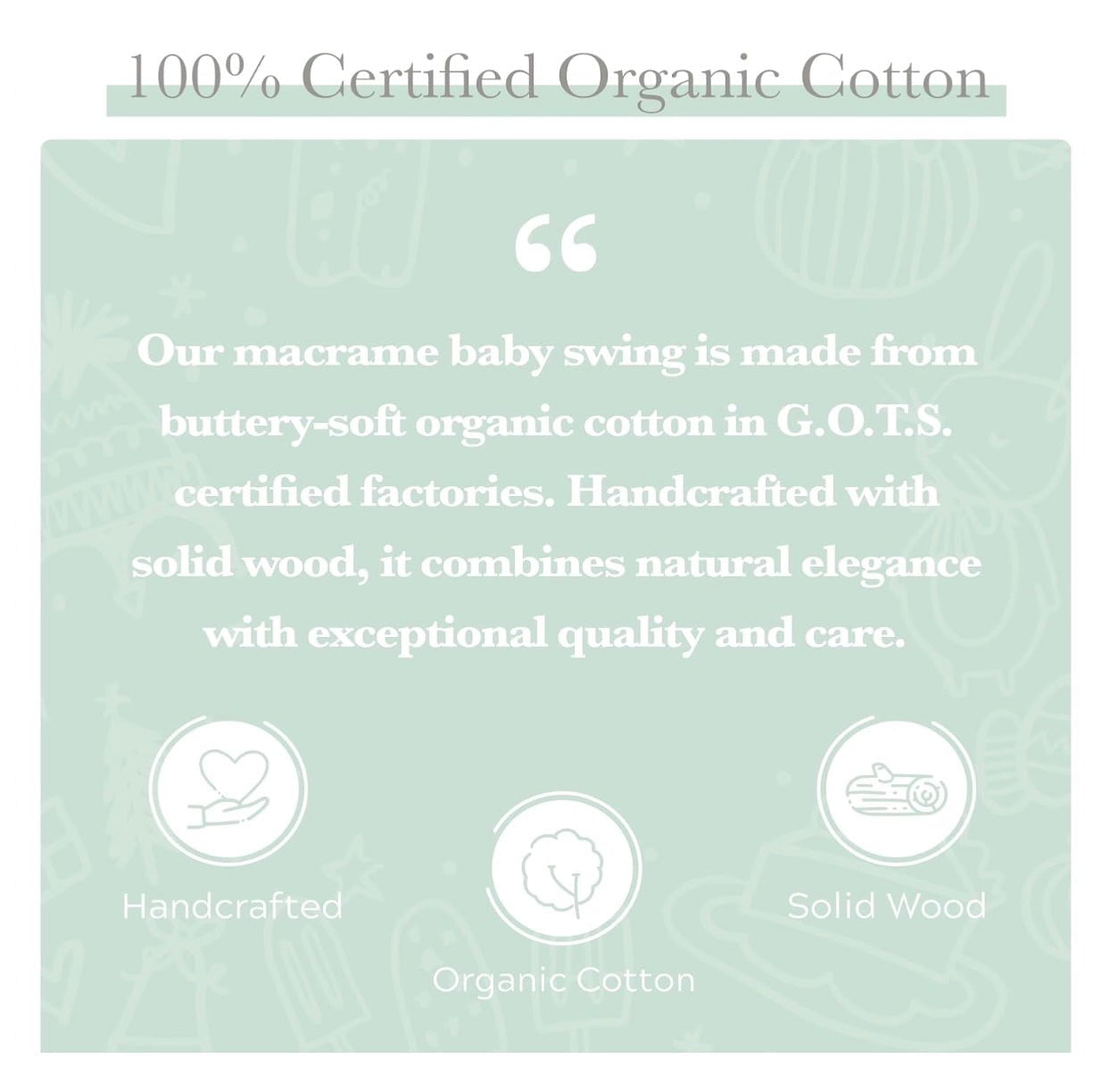 ✔ 100% Organic & Eco-Friendly Materials – Made with premium organic cotton rope and a sturdy solid wood bar for durability, safety and comfort.