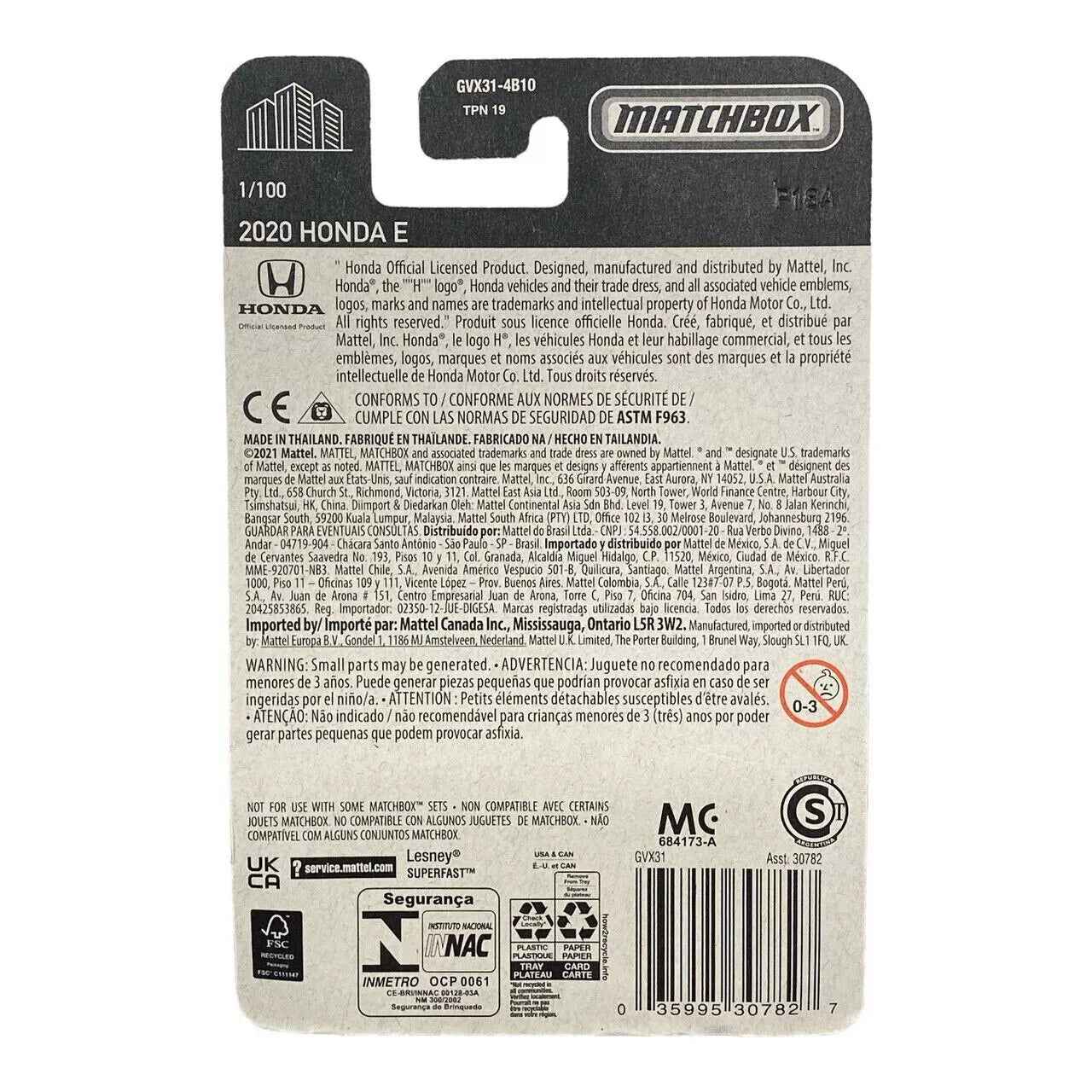 Matchbox 2020 Honda E - Matchbox Series 1/100