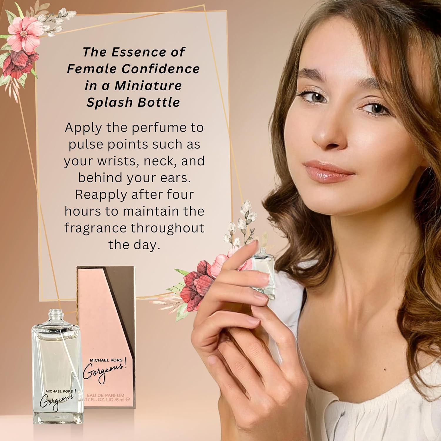 Experience the elegance of Michael Kors Gorgeous Perfume for Women with this mini splash EDP perfectly sized at 0.17 fl oz. This luxurious fragrance captures the essence of sophistication and charm making it ideal for travel or on-the-go touch-ups. Indulge in the timeless allure of Michael Kors Gorgeous and carry a touch of luxury with you wherever you go.