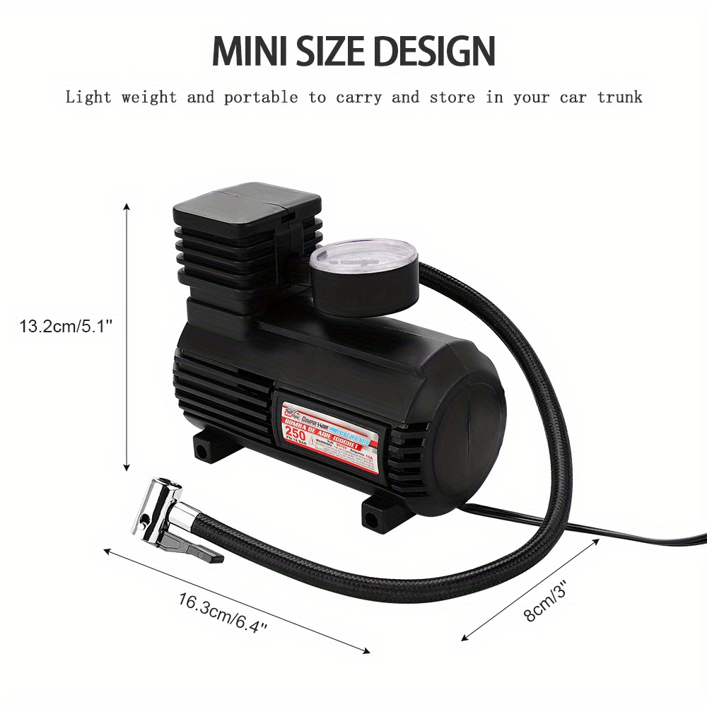1. Product Description Heavy Duty 12V Portable 250PSI Car Tyre Auto Tire Inflator Pump Air Compressor Description: 250 PSI 12V Digital Tire Pump Auto Air Compressor Car Tire Inflator Car Pressure Gauge for Car Bicycle Feature