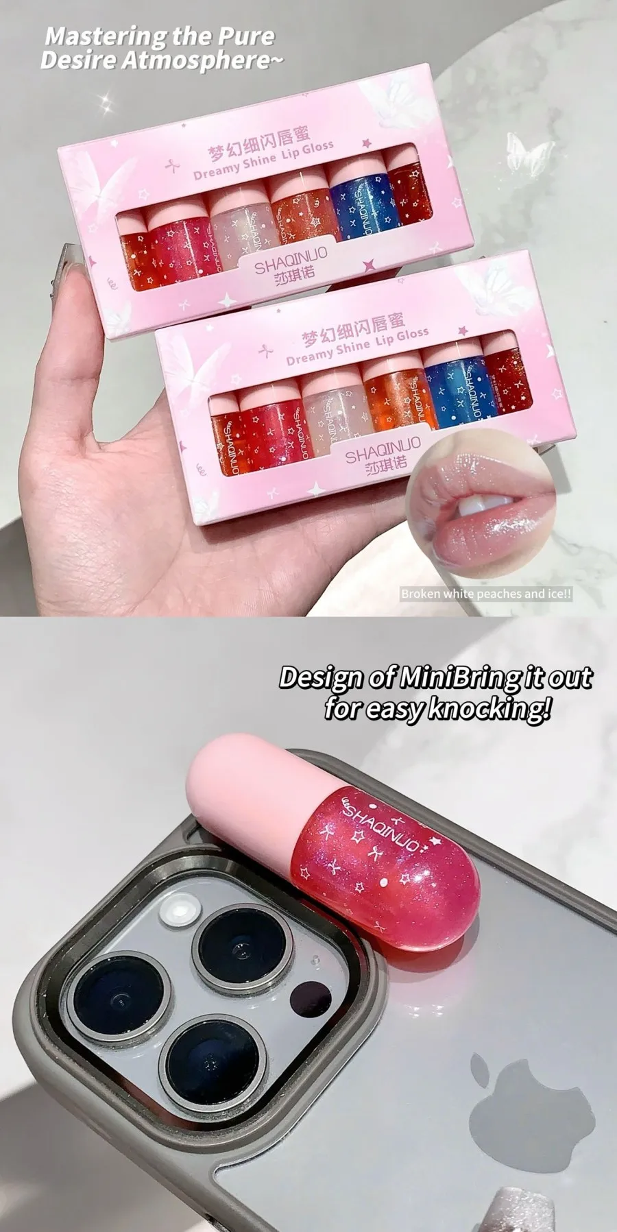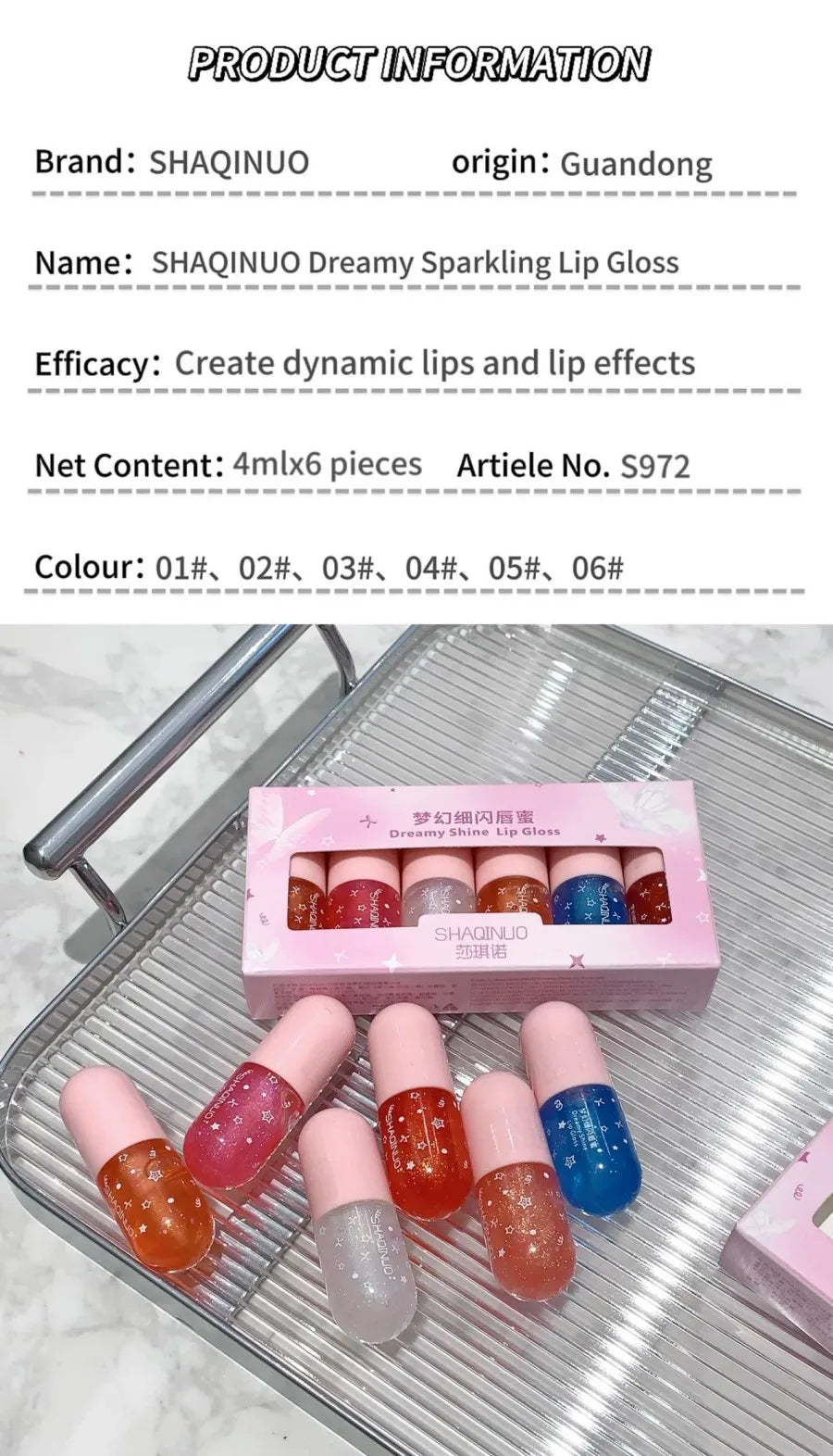 Shimmery Glitter Moisturizing Lip Gloss Set 6 Colors Highly Pigmented Fine Shine Long Wear Cute Lipgloss Set