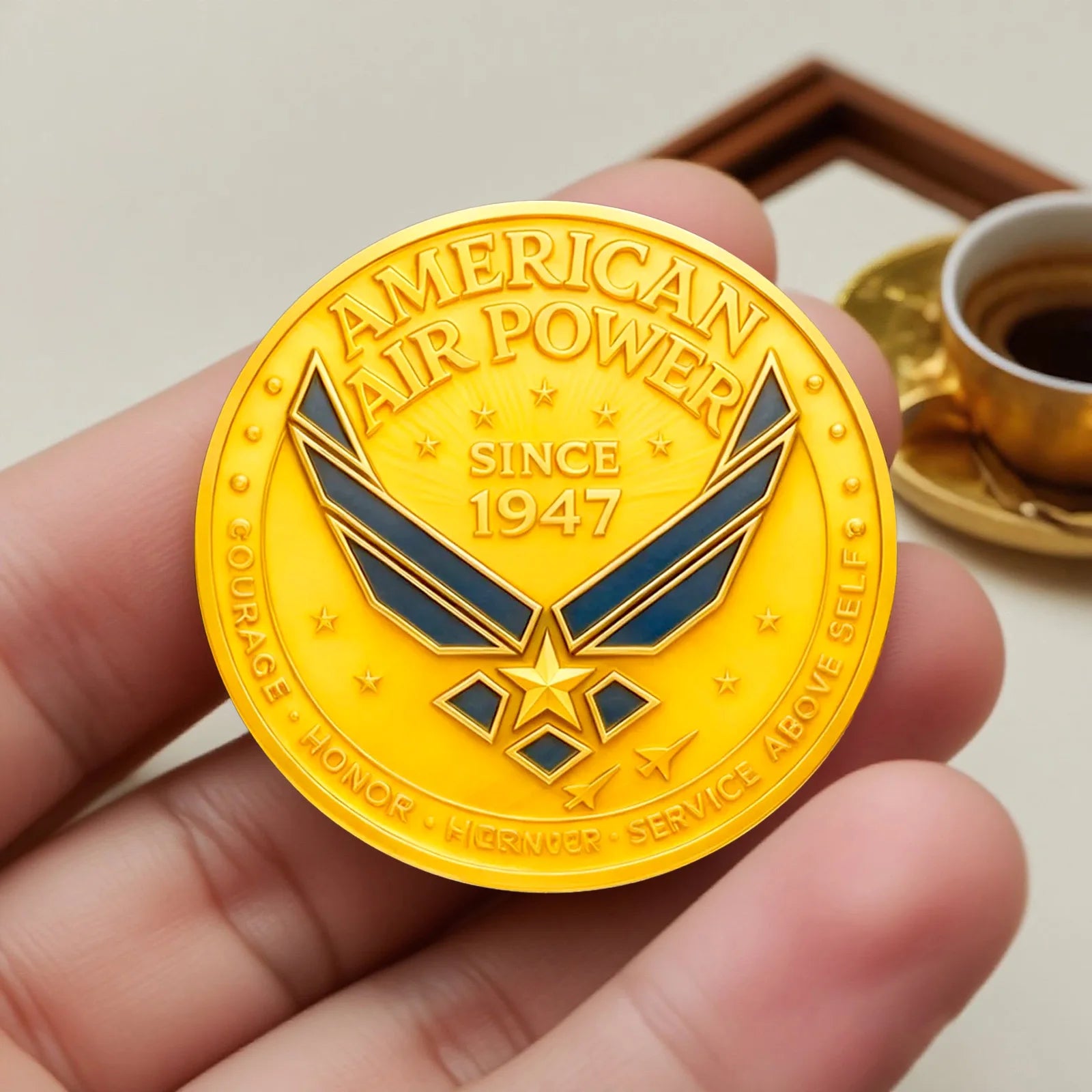 Celebrate the strength and legacy of the United States Air Force with this beautifully crafted commemorative coin. Featuring the iconic “Fly, Fight, Win” motto and honoring American air power since 1947, this collectible piece is perfect for military enthusiasts, collectors, and patriotic gifts.