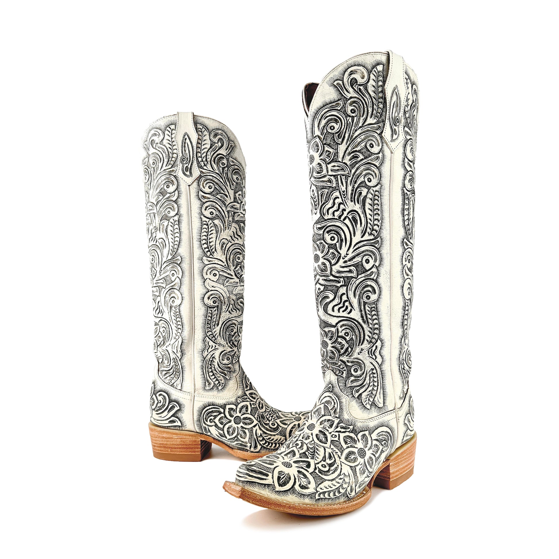Women’s Hand-Tooled White Tall Cowgirl Boots